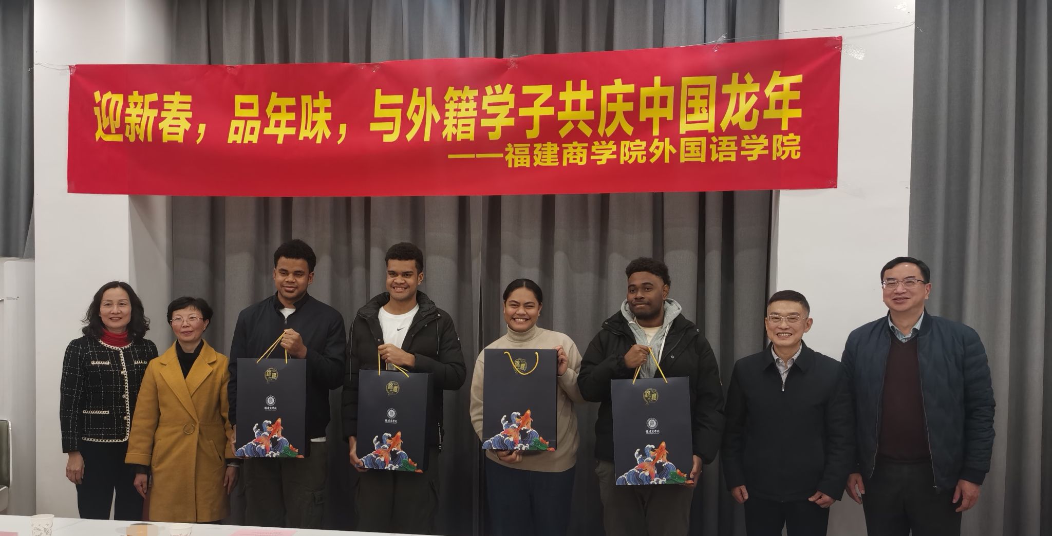 2月7日下午,米兰milan官方网站举办“迎新春,品年味,共庆中国龙年”留学生新春座谈会。校党委书记吴访益、校党委副书记蒲文庆、副校长林文艺,教务处、学工部、米兰milan官方网站有关负责人以及留学生代表欢聚一堂,喜迎新春。