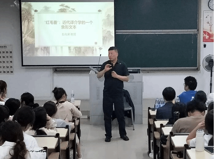 讲座伊始,彭兆荣教授以某些学生过度依赖手机、学历贬值而导致当代大学生妄自菲薄为引,指出了当代大学生浮躁而空虚的现象,他强调大学生应脚踏实地、深研学问,从延续民族命脉中开拓奋进。同时,结合《“红毛番”:近代译介学的一个象形文本》一书中的内容,在介绍“红发番”一词的概念及来源的基础上以中国与荷兰相互形象变迁为例详细阐述了形象文本的前提条件与规则。彭兆荣教授提出,人无精神则不立,国无精神则不强,新时代青年应找到译介学向外探索与坚持民族自信、文化自信之间的平衡,做到“以小见大,以实务虚,以近推远。”延续古典之美,承载时代之新。