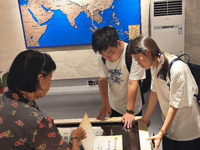 在采访中,实践队成员们了解到,吴秀满女士不仅是市舶司遗址的守护者,也是泉州籍华侨。吴女士向队员们讲述了她的成长经历,并表示自己本身也是侨批的使用者,至今与印度尼西亚的家人仍用书信保持联系。吴秀满女生的故事让实践队成员们深感敬佩,她用自己的行动诠释了对文化遗产的热爱和守护,用自身经历向世人展现了文化交融的新篇章。正是有了像她这样的守扩者,我们的文化遗产才能得以传承和发扬。