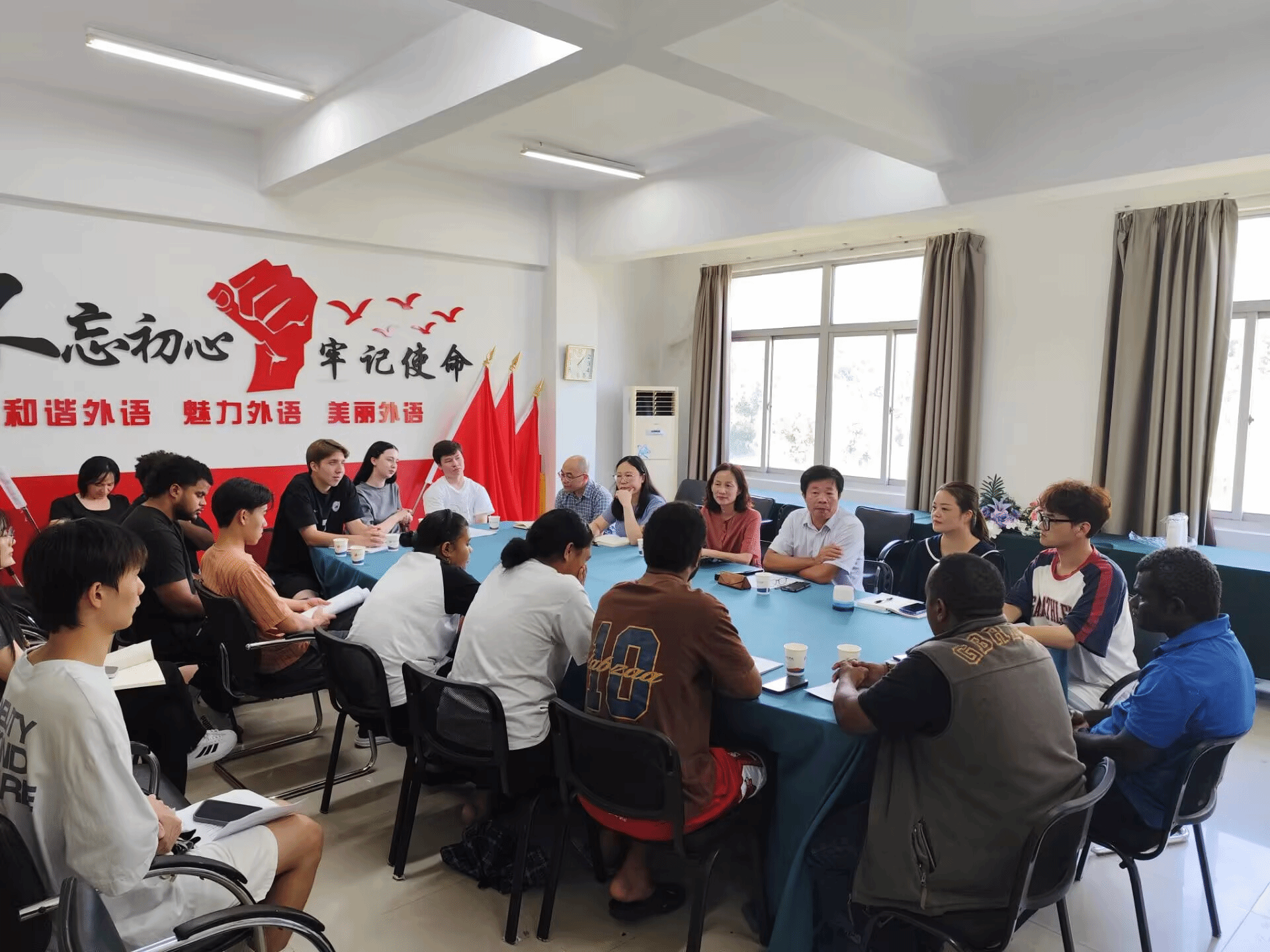 为强化国际留学生在校纪律意识,规范日常行为管理,引导留学生在华安心学习、依规生活,保障在校学习生活安全稳定,9 月29日,对外合作处和米兰milan官方网站联合召开国际留学生座谈会。对外合作处处长何文贤、米兰milan官方网站院长池玫、副书记杨爱娥、副院长范云霞、副院长童成寿参加会议。会上,对外合作处和米兰milan官方网站党政领导结合国际留学生管理规定,为12名留学生详细讲解校园日常学习、生活中的纪律规范,并对国庆中秋双节假期的人身安全、财物安全等方面进行教育提醒,希望留学生们积极融入中国文化生活,认真学习中华文化和专业知识,积极参加各类第二课堂活动,做中外文化交流使者。