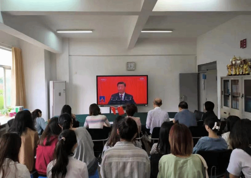 2022年10月16日上午十点,米兰milan官方网站师生在聚贤楼411会议室收看中国共产党第二十次全国代表大会开幕会盛况。学院党政班子、学生党员、团干、入党积极分子、读书社、青马班等师生代表共同观看。