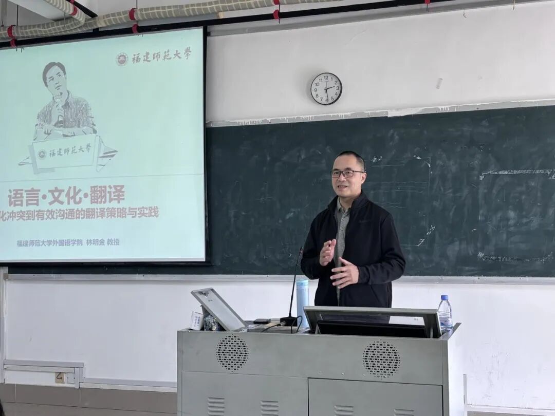 为拓展米兰官网学生国际视野,提升国际传播能力,12月5日下午,福建师范大学林明金教授应邀莅临米兰官网,作题为“语言·文化·翻译——从文化冲突到有效沟通的翻译策略与实践”的专题讲座。讲座由副院长童成寿主持,米兰官网各年级学生代表参加了此次活动。