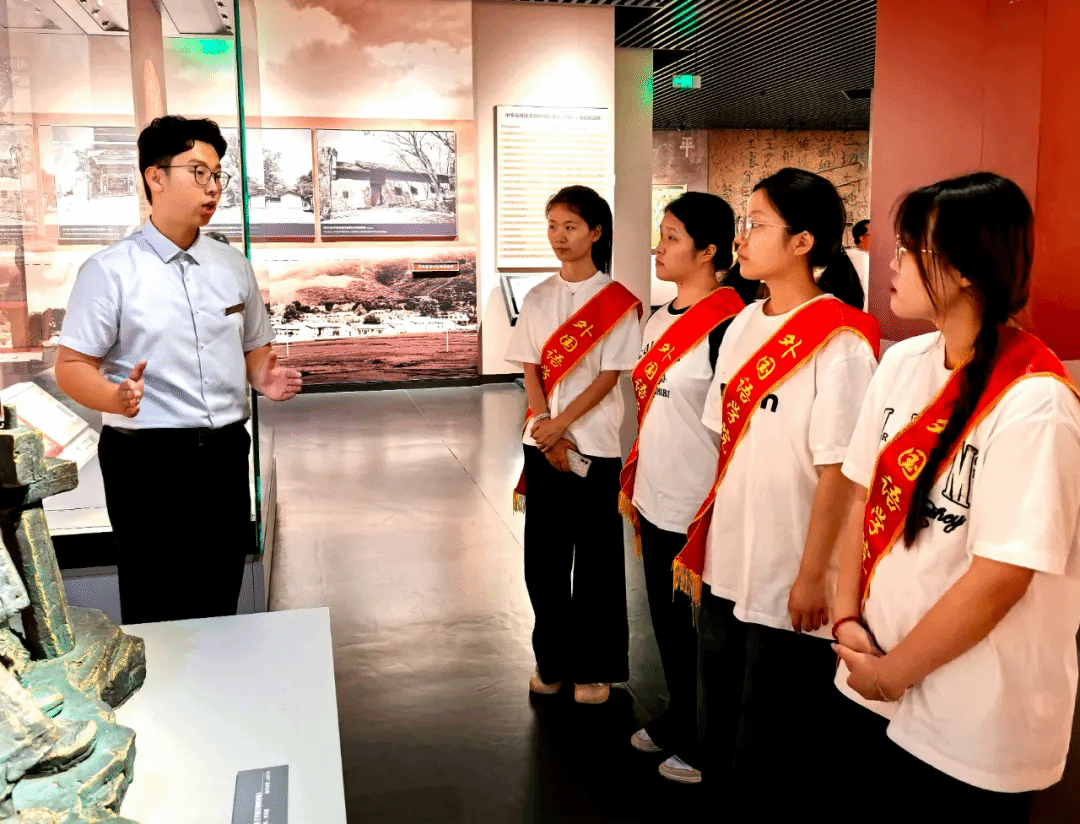 “当年鏖战急,弹洞前村壁。装点此关山,今朝更好看。”这是毛泽东同志在瑞金大柏地写下的词句。瑞金,这座承载着厚重红色记忆的城市,便是“今朝更好看”的生动写照。实践队踏入叶坪,在这片孕育红色基因的沃土上,以历史的足迹为经纬,深切感知红色基因在薪火相传的磅礴力量与深刻演变。深入叶坪革命旧址群,简陋的陈设诉说着人民政权初创的艰辛与伟大,长条木凳仿佛回荡着“一切权力归苏维埃”的历史强音;移步革命历史博物馆,展馆讲解员引领队员们凝视着一件件珍贵史料:《中华苏维埃共和国宪法大纲》手稿、土地革命时期的田契、扫盲运动的课本,立体呈现了党领导苏区军民在极端困难条件下,进行政权建设、土地革命、经济探索和文化教育的伟大实践。每一件文物都是穿越烽火的无声见证,铭刻着苏区军民红色精神之源。