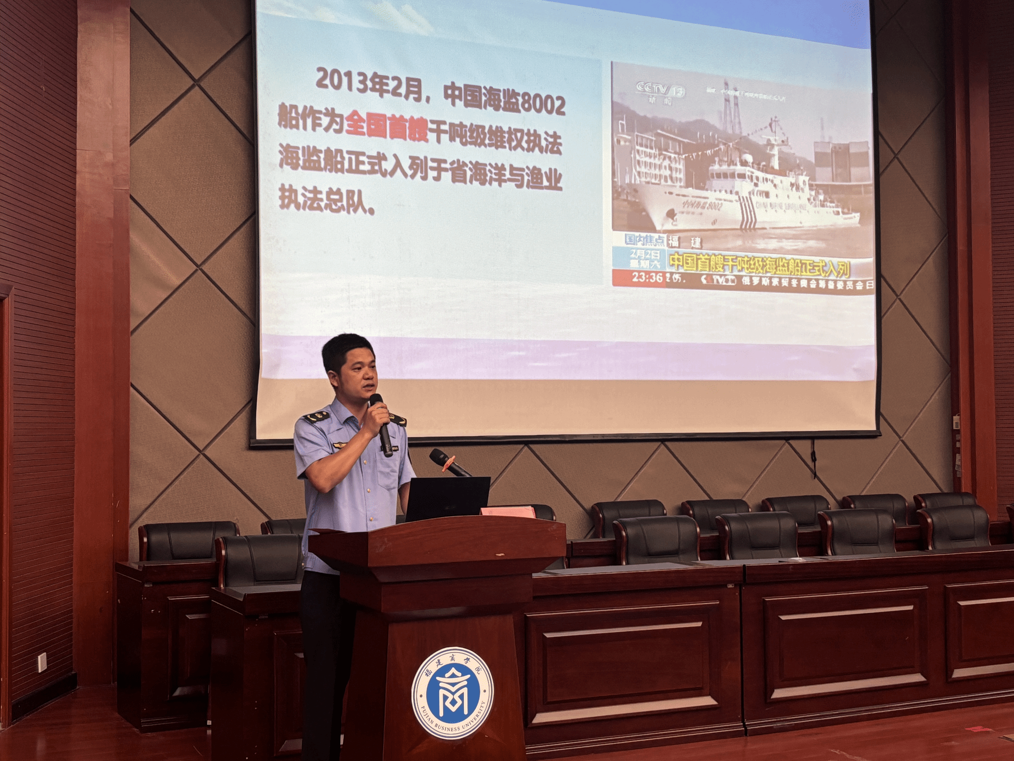 活动的尾声,学院党委副书记杨爱娥对福建省海洋与渔业执法总队特勤执法支队一行带来的生动思政课表达真挚的谢意。她鼓励同学们以为他们榜样,在学习中练就过硬本领,将来到岗位上勇担责任,把个人理想融入国家发展大局。