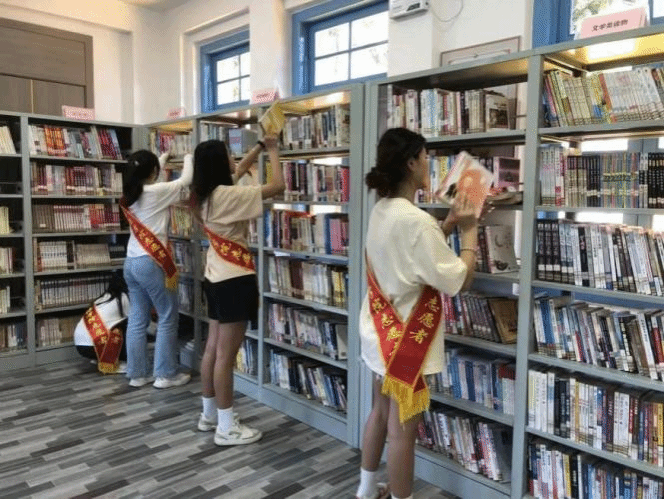 图1-2志愿者整理书籍