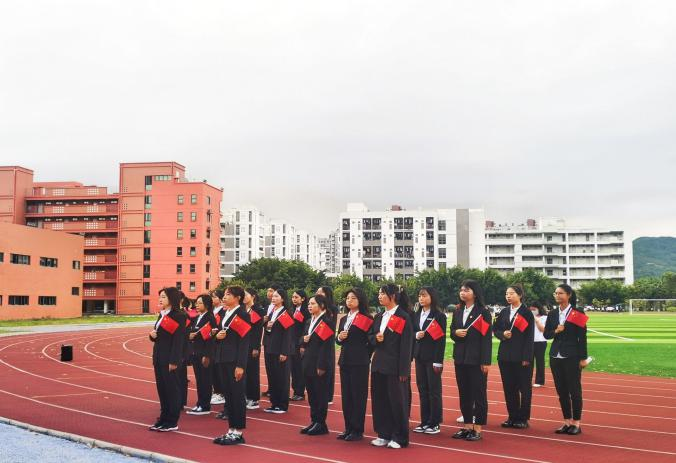 为庆祝中华人民共和国成立72周年,引导学生深入学习党史,厚植爱国主义情怀,2021年10月4日,米兰milan官方网站于马尾校区田径场举行升旗仪式,学院师生代表参与本次活动。