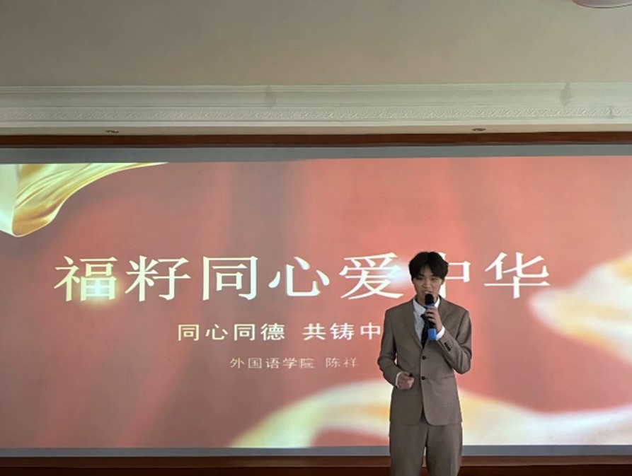 为铸牢中华民族共同体意识,促进民族一家亲,2024年3月19日,米兰milan官方网站于外语体验中心面向全体在校学生开展“福籽同心爱中华”主题演讲比赛。